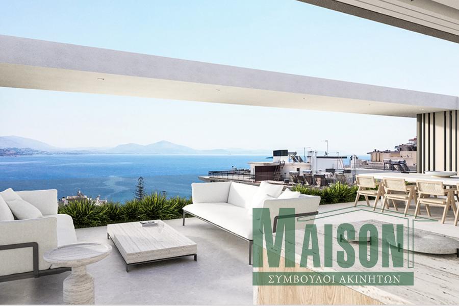 Πωλείται σύγχρονη μεζονέτα 3ου και 4ου ορόφου συνολικής επιφάνειας 145 τ.μ. στη Βάρκιζα, σε εξαιρετική τοποθεσία μόλις 150 μέτρα από τη θάλασσα και 800 μέτρα από το κέντρο της περιοχής.