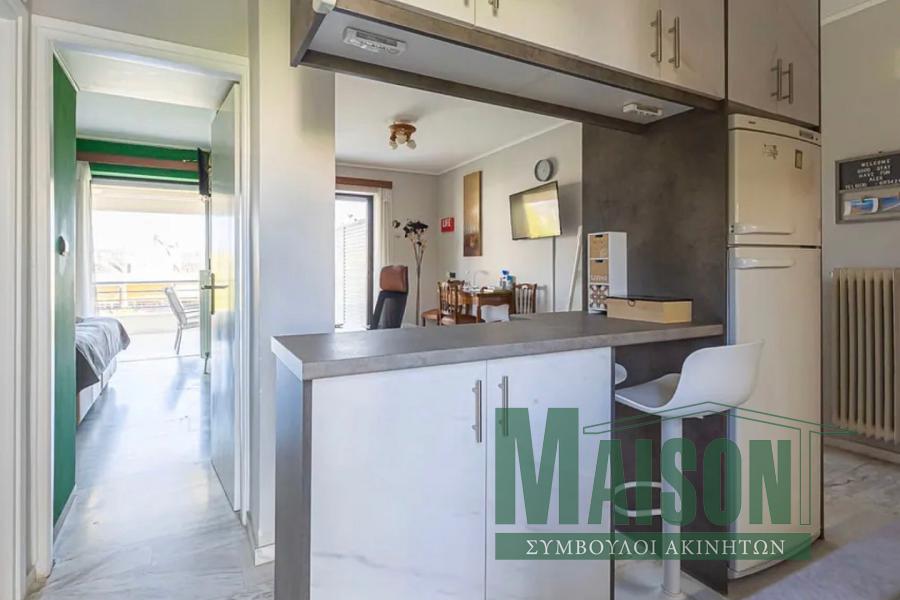 Αποτελείται από ένα υπνοδωμάτιο, ένα μπάνιο, φωτεινό καθιστικό και άνετες βεράντες. Είναι ανακαινισμένο το 2021 και διαθέτει πόρτα ασφαλείας, κουφώματα αλουμινίου με διπλά τζάμια, σίτες, ηλεκτρικές τέντες και κλιματισμό. Τα δάπεδα είναι από μάρμαρο και πλακάκι, προσφέροντας κομψότητα και εύκολη συντήρηση.