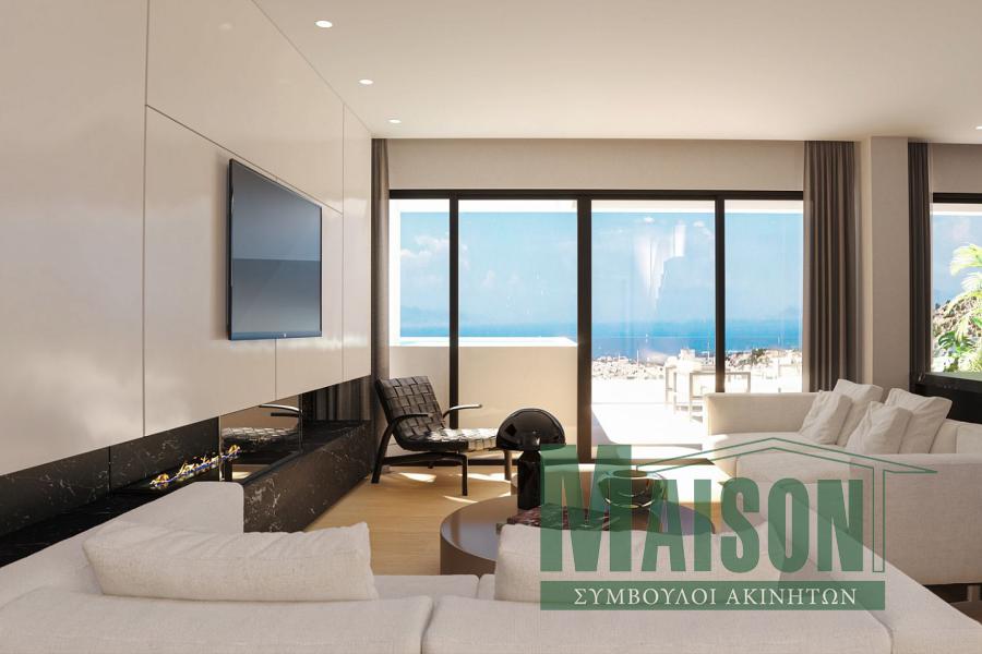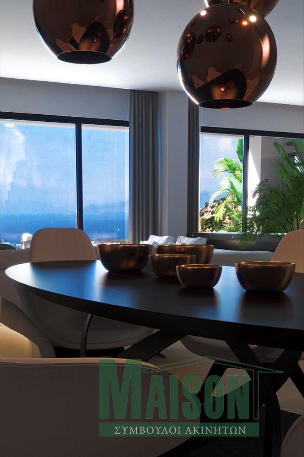Τερψιθέα Γλυφάδας, υπο κατασκευή διαμέρισμα 116 τ.μ. στον 4ο. Μοντέρνα αρχιτεκτονική, ωραίες εσωτερικές διαρρυθμίσεις πολύ καλές επιλογές υλικών. Αποτελείται από καθιστικό – τραπεζαρία - κουζίνα εξοπλισμένη με ηλεκτρικές συσκευές - 3 υπνοδωμάτια – μπάνιο – wc. Εχει αυτόνομη ενδοδαπέδια θέρμανση, ενεργειακό τζάκι, κλιματισμό με VRV, θερμοδιακοπτόμενα αλουμίνια και πόρτα ασφαλείας. Τεχνολογία smart home, δορυφορική κεραία και φωτοβολταϊκά panels. Επίσης, εχει υπόγεια αποθήκη και υπόγεια θέση στάθμευσης αυτοκινήτου. Το κτίριο έχει προδιαγραφές ενεργειακής κλάσης Α+.